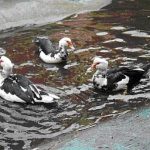 Die Füsse setzen weit hinten am Körper an. Dadurch wirkt der Gang an Land etwas ungeschickt – der Watschelgang. Den langen Hals können die Enten weit drehen, um in alle Richtungen zu schauen. Das Gefieder ist sehr dicht. Am unteren Rücken sitzt eine Drüse. Die heisst Bürzeldrüse und gibt, wenn die Enten sie mit dem Schnabel berühren, eine ölige Flüssigkeit ab. Die wird dann mit dem Schnabel auf die Federn verteilt, damit sie das Wasser abweisen. So können die Enten schwimmen oder im Regen hocken, ohne dass ihre Federn nass werden. Ginge das nicht, würden die Enten erfrieren, das wäre so, als wenn Du mit nassen Sachen herumlaufen würdest.