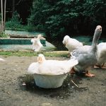Auf unserem Bauernhof haben wir einen Teich. Gänse schwimmen und baden sehr gern, sie waschen und putzen sich ausgiebig und gerne in sauberem Wasser. Gänse können aufgrund ihres Körperbaus auch auf dem Land lange Strecken zurücklegen. Sie verfügen über ein ausgezeichnetes Erinnerungsvermögen und sie wissen sehr schnell, wo sich gute Weideplätze befinden und wie sie nach hause in ihren heimischen Stall finden.