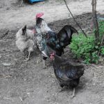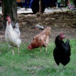 Die Hühner auf dem Kinderbauernhof sind in erster Linie dazu da, uns Stadtmenschen zu zeigen, wie sie leben. Manchmal schenken sie uns Eier. Geschlachtet haben wir lange keins.Auf dem Kinderbauernhof sind die Hühner nachts im Stall, um sie vor den natürlichen Feinden Fuchs und Marder zu schützen und natürlich auch vor den Großstadtmenschen und deren frei laufenden Hunden. Tagsüber können sie auf dem ganzen Gelände frei umher laufen, scharren und picken. Zusätzlich zu der Nahrung, die sie sich tagsüber selbst suchen wie Würmer, Insekten und frisches Grün bekommen die Hühner morgens, und abends Salat, Körner, Gekochtes wie zum Beispiel Nudeln, manchmal auch Obst angeboten. Die Körner und Salat. werden auch tagsüber zwischendurch gereicht. Dabei müssen wir daneben stehen, damit die Tauben ihnen nichts wegfressen. Wenn die Hühner satt sind, stelle wir das restliche Futter weg, weil wir sonst Ratten anlocken.