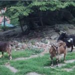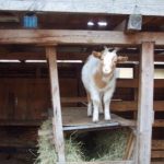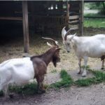 Wir haben zwei abgezäunte Plätze, wo sie abwechselnd stehen. Im Tag – Gehege Regen geschützt. Das Nacht – Gehege hat einen Stall, der mit sauberem und trockenem Stroh eingestreut ist. Dort können sich die Ziegen nachts einkuscheln;